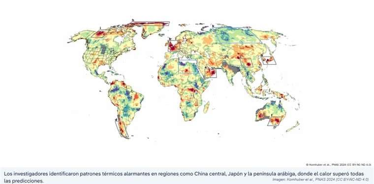 Lo que hace aún más intrigante este fenómeno es su distribución desigual. Mientras algunas regiones experimentan estos extremos inexplicables, otras áreas muestran aumentos de temperatura incluso menores a lo predicho por los modelos. Este es el caso de amplias zonas del centro-norte de Estados Unidos, el centro-sur de Canadá, el interior de Sudamérica, gran parte de Siberia, el norte de África y el norte de Australia.