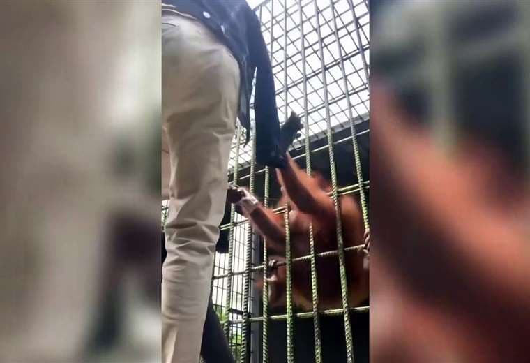 Un hombre que visitaba un zoológico en Indonesia violó la línea de seguridad que separa a los visitantes de los animales y fue atacado por un orangután.