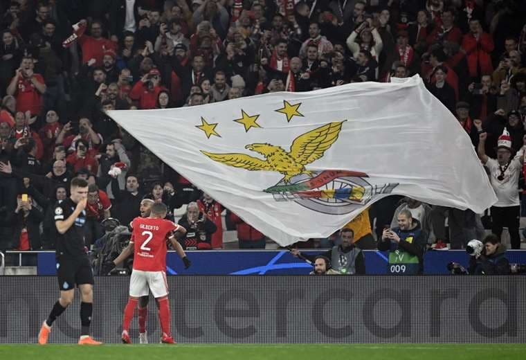 Rafa Silva (38), Gonçalo Ramos (45+2 y 57), Joao Mario (71, de penal) y el brasileño David Neres (77) anotaron los goles de las 'Águilas', mientras que el neerlandés Bjorn Meijer marcó el tanto del honor para el Brujas (87).