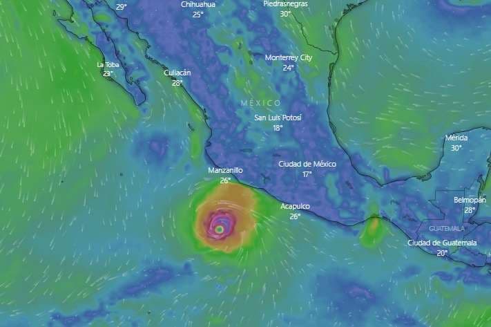 El meteoro, de categoría 3 de 5 en la escala de Saffir-Simpson, se localizaba 400 km al sur-suroeste de Zihuatanejo (estado de Guerrero) y se desplazaba hacia el oeste a 22 km/h, con vientos máximos sostenidos de 185 km/h, indicó el NHC en su reporte de las 15H00 GMT.