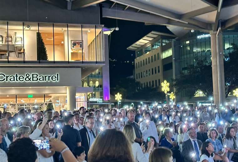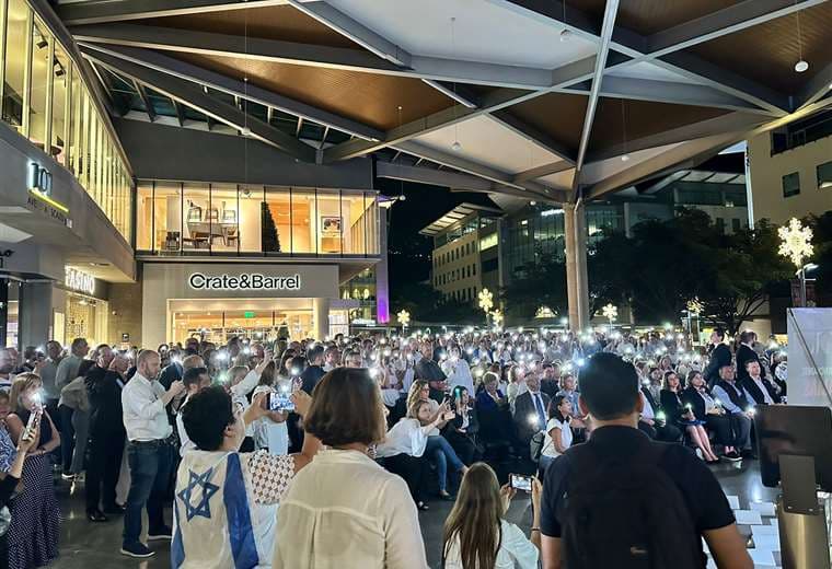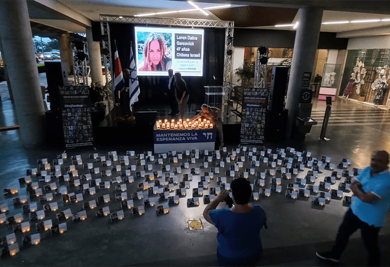 Decenas de ciudadanos se reunieron en la explanada de Avenida Escazú y se unieron al llamado para la liberación inmediata de los más de 240 rehenes que permanecen en manos del grupo terrorista Hamás.