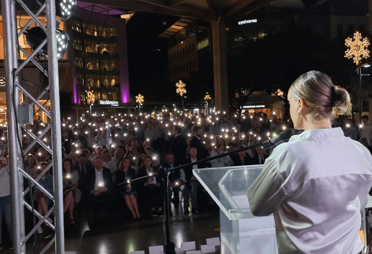 Con candelas y focos de celulares iluminaron el lugar como medida simbólica por la liberación de las víctimas.