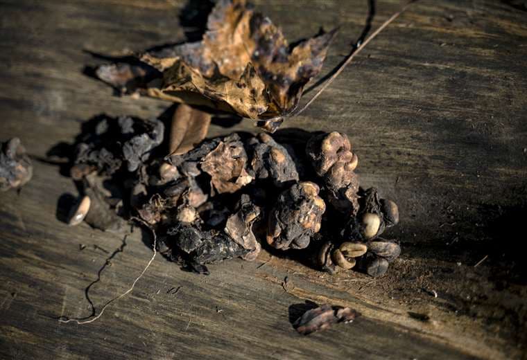 Los excrementos del jacu se asemejan en su aspecto a una barra de cereal, con los granos de café incrustados en una pasta negruzca.