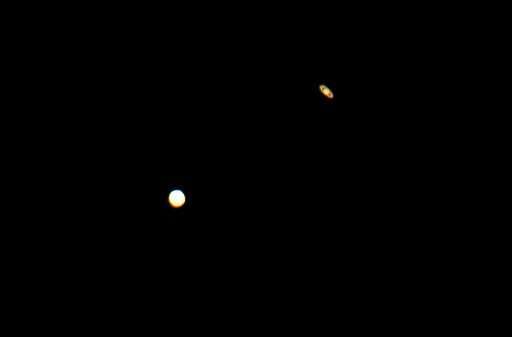 A las 18H22 GMT, los dos gigantes gaseosos aparecían en el mismo campo de visión de un instrumento de observación, dando la impresión de rozarse, cuando en realidad se situaban a más de 730 millones de kilómetros el uno del otro.