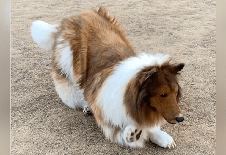 Gastó aproximadamente $14 mil ( ₡8 millones) en su disfraz de collie de pelo largo hecho a medida y salió a pasear por el parque.