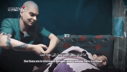 El hombre de la cabeza rapada explicó bajo coacción -- como todos los rehenes que aparecen en los vídeos de las Brigadas Ezzedin Al Qasam -- que su compañero se encontraba en un estado físico y mental muy difícil, y pidió a los dirigentes israelíes poner fin a la guerra en Gaza.
