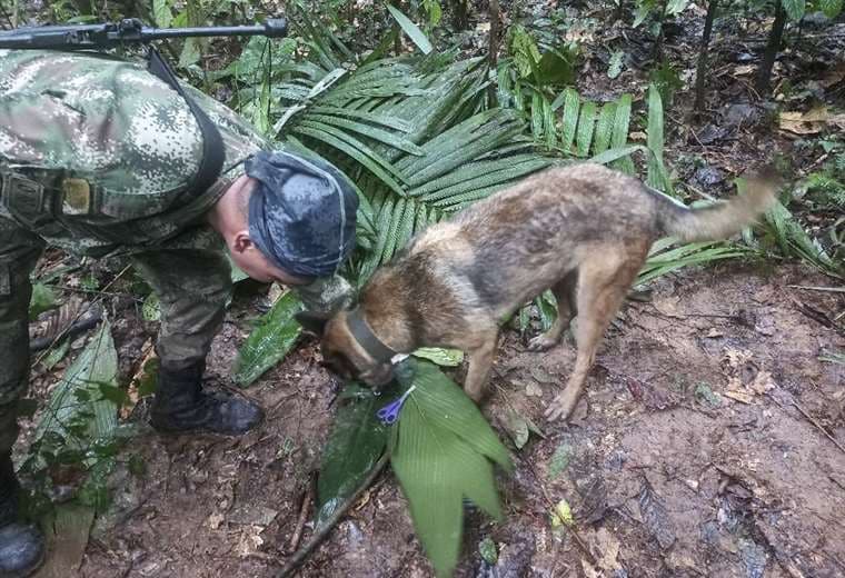 Antes de perderse, el perro "orientó a la tropa hasta puntos clave para el seguimiento y para descifrar el camino que estaban haciendo los niños", detalla Edgar Fontecha, otro instructor canino de la escuela.