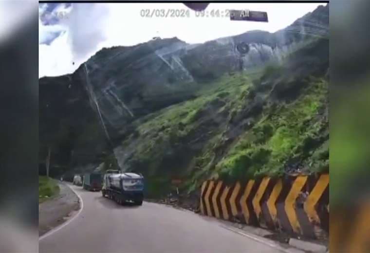 Un conductor grabó el instante cuando las piedras de más de media tonelada de peso caen sobre la montaña y se llevan el furgón delantero, luego caen sobre el que estaba grabando.