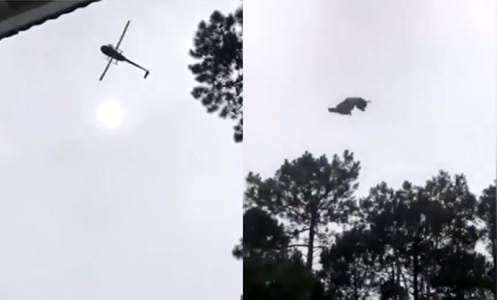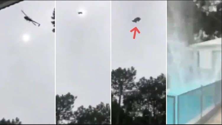 Un video que se viralizó en redes sociales muestra un helicóptero sobrevolando una vivienda, cuando súbitamente cae desde la nave un cuerpo de animal en una pequeña piscina.