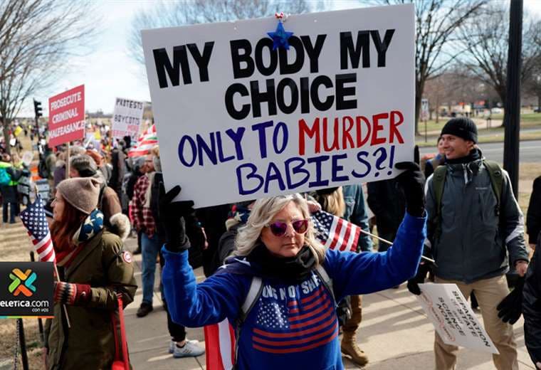 Hay carteles con mensajes como "Mi cuerpo, mi elección" o "Dios es nuestra roca y vencerá a Goliat". También hay muchos mensajes contra Joe Biden, en medio de banderas estampadas con el nombre de Donald Trump.