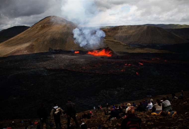 Miles de curiosos siguen de cerca la erupción de un volcán en Islandia