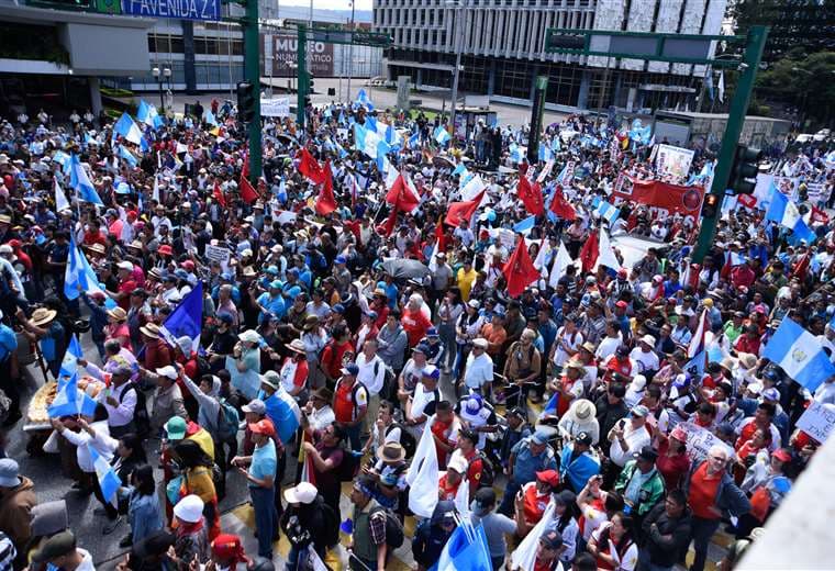 Los manifestantes recorrieron a pie varios kilómetros para llegar a esos puntos, tras partir de cuatro accesos de la Ciudad de Guatemala para exigir la salida de Porras, el fiscal Rafael Curruchiche y el juez Fredy Orellana. Los tres figuran en una lista de Estados Unidos de actores "corruptos".