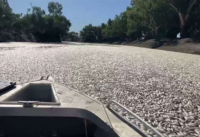Millones de peces muertos y en estado de creciente putrefacción bloquean un tramo de río en una remota localidad en el interior de Australia, que atraviesa una intensa ola de calor.