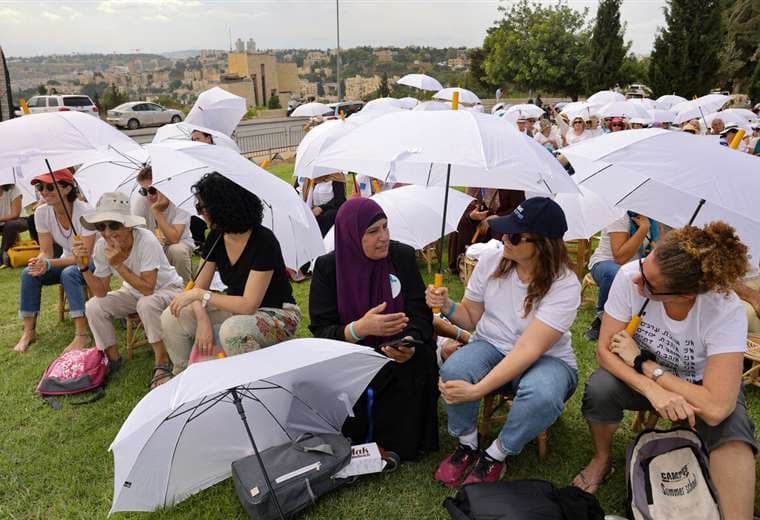 Centenas de mujeres israelíes y palestinas manifestaron juntas el miércoles en Jerusalén y cerca del mar Muerto (en Cisjordania ocupada) por la paz entre sus pueblos.