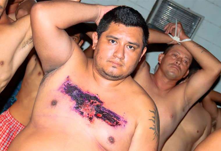 Bukele mostró fotografías en las que aparecen tres presuntos pandilleros con lo que aparentan ser quemaduras sangrantes o en proceso de cicatrización, sobre tatuajes en distintas partes de su cuerpo.