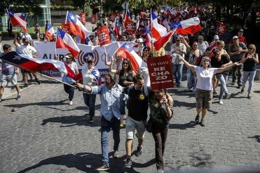 Cerca de un millar de manifestantes expresaron su rechazo a elaborar una nueva Constitución y respaldaron la continuidad de la actual carta magna heredada de la dictadura de Augusto Pinochet (1973-1990).