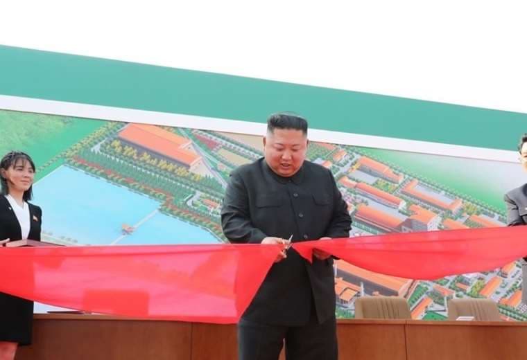 "El dirigente supremo Kim Jong Un cortó la cinta en la inauguración de la planta de fertilizantes de fosfato de Sunchon", señala la KCNA, que publicó fotos del evento en las que se encuentra junto a su hermana y consejera Kim Yo Jong.