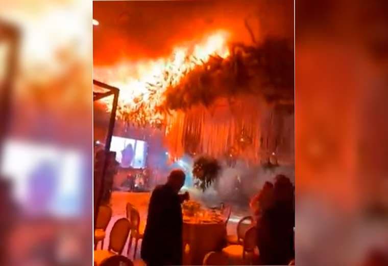 Mientras los novios bailaban la canción “Para amarnos más” de Mijares los meseros trataban en vano de lanzar agua y usar extintores para apagar las llamas.