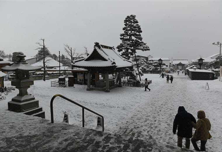 Lejos de estos contratiempos, en el templo de Zenkoji, en la ciudad montañosa de Nagano (centro), los visitantes se deleitaron con el espectáculo de la nieve. La misma estampa se vio en Kioto, la antigua capital imperial, dotada de un rico patrimonio histórico.