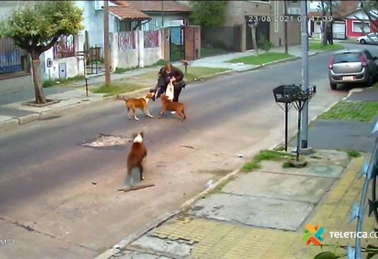 El hecho fue registrado por la cámara de seguridad de un vecino. Los animales se le abalanzaron y la mordieron. Varios habitantes del barrio acudieron a ayudar a la señora y, con palos y rastrillos, trataron de alejar a los canes.