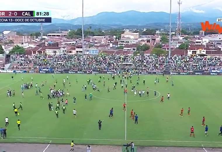 Al minuto 81, una multitud descendió de las tribunas del Estadio Doce de Octubre en la ciudad de Tuluá (suroeste), e invadió la cancha, según mostró en la transmisión oficial.