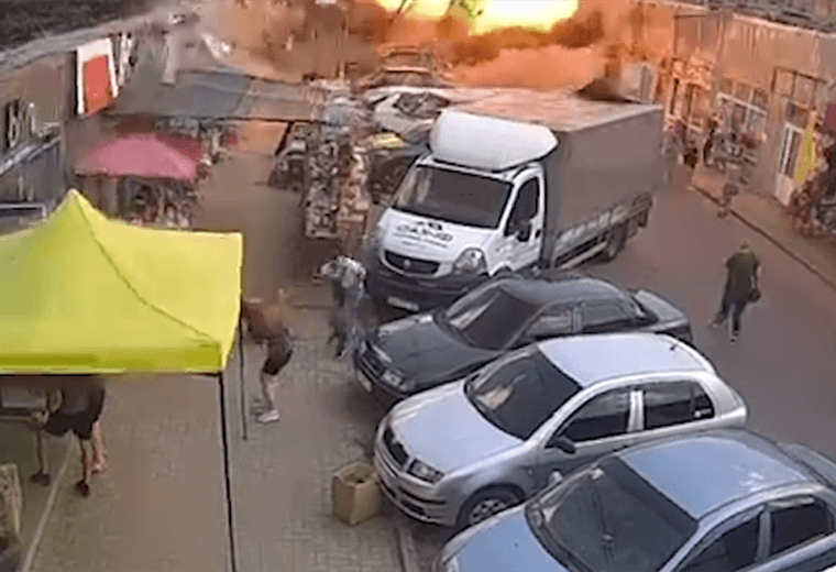 El medio argentino El Clarín publicó en su cuenta de Instagram el video captado por una cámara en el mercado Kostyantynivka, en Ucrania.