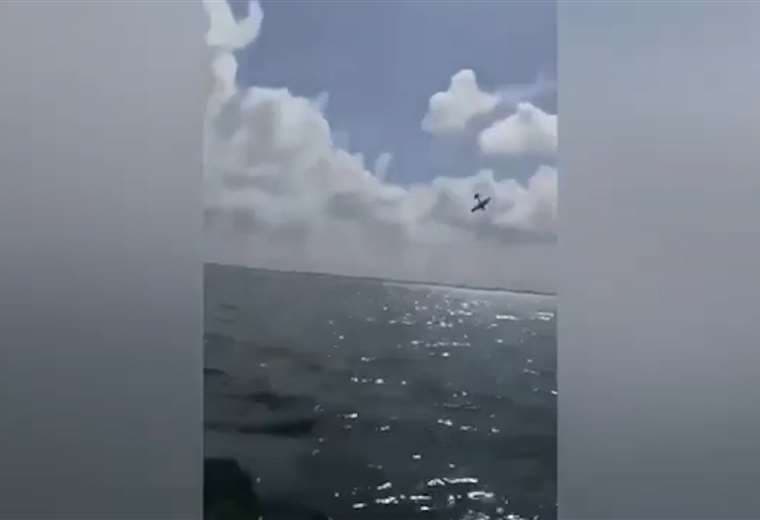 En el video se aprecia cuando la avioneta desciende en picada hasta que se estrella en el mar ante la mirada atónita de las personas.