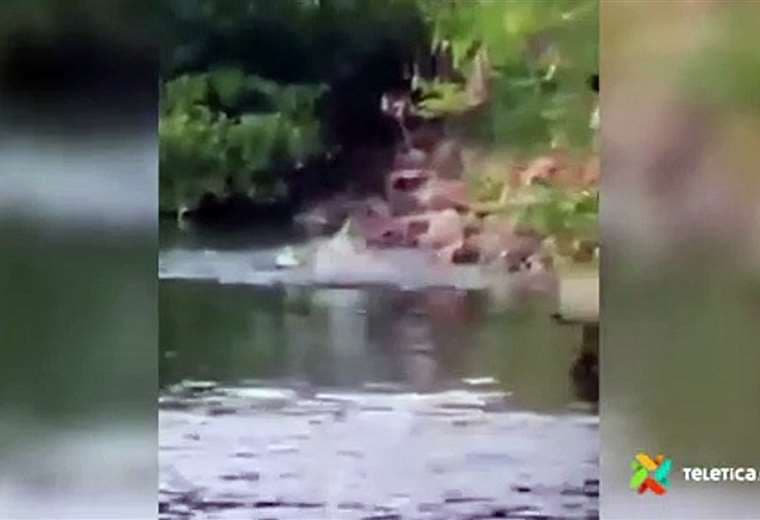 “Ya trae a la señora ya… ya está muerta la señora ya, pues tanto tiempo dentro del agua, qué feo”, se escucha a un hombre decir. “Está bien grande el animal”, habla otro testigo.