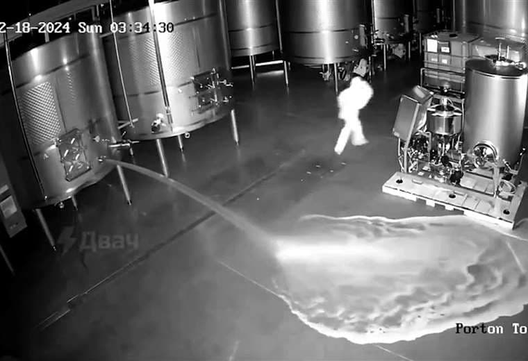 Imágenes de cámaras de vigilancia facilitadas a AFP por la bodega Cepa 21 muestran a un individuo encapuchado que va recorriendo los tanques de vino y los abre, desparramando por el suelo el líquido con denominación de origen controlado Ribera del Duero.