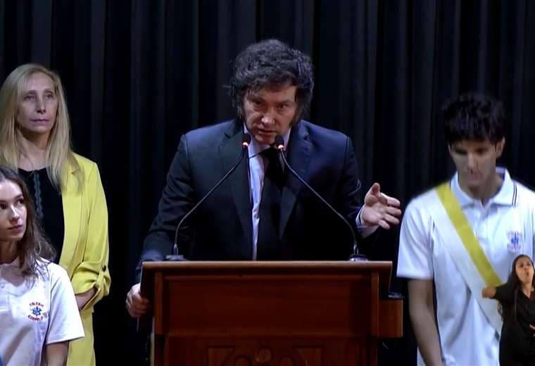 El presidente de Argentina acudió al Instituto Cardenal Copello para inaugurar el curso lectivo. Dos alumnos se descompensaron durante su discurso sobre el comunismo y "los zurditos".