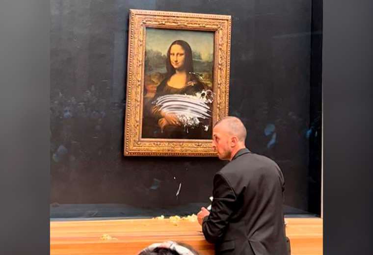 Un hombre disfrazado con una peluca y en una silla de ruedas lanzó un queque contra el famoso cuadro de la Mona Lisa, mientras realizaba un recorrido por el Museo del Louvre.