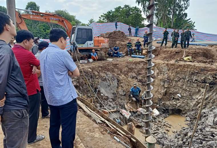 Soldados e ingenieros intentaban el martes rescatar a un niño de 10 años que cayó hace cuatro días en un agujero de 35 metros de profundidad en una obra de construcción de un puente en el sur de Vietnam.
