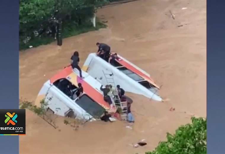 Video: pasajeros desesperados tratan de salir de autobuses arrastrados por la corriente