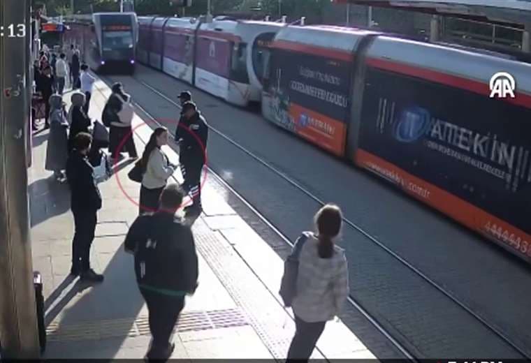 El incidente ocurrió cuando la mujer, que caminaba con auriculares puestos, se dirigía hacia las vías férreas sin percatarse de la proximidad del tren. El oficial, que se encontraba vigilando la línea amarilla de seguridad, reaccionó de inmediato al notar el peligro y logró retenerla justo a tiempo, evitando una tragedia.