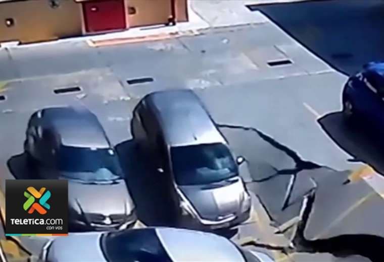 Los vehículos estaban en el estacionamiento de la terraza del edificio y cayeron en el área de comidas. Como se muestra en las imágenes adjuntas, las personas salieron corriendo y se desató un caos.