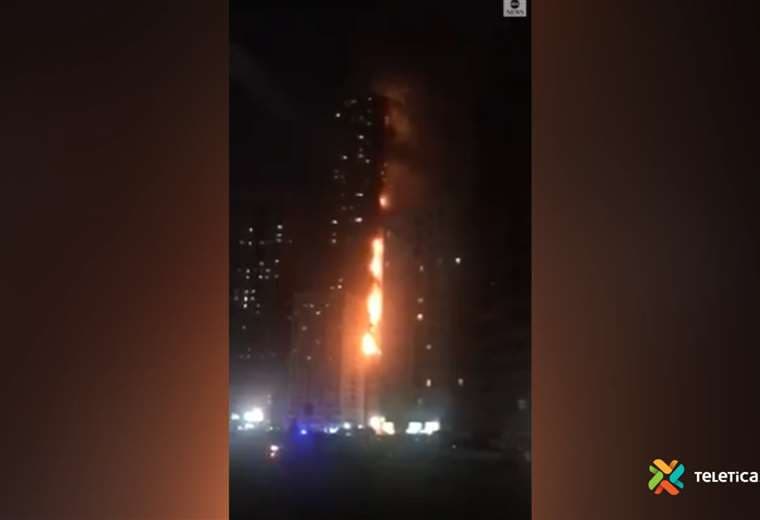 Video: voraz incendio consume edificio en Emiratos Árabes