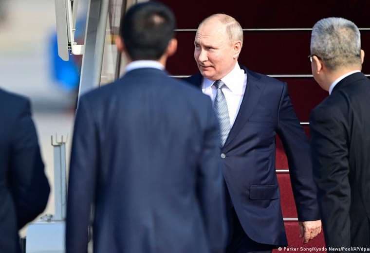 Putin bajó de su avión después de aterrizar en Pekín poco antes de las 9:30 a.m. locales, para una misión dirigida a fortalecer los ya sólidos lazos de Moscú con su vecino comunista.