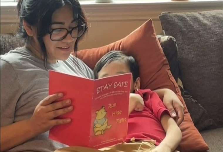 "Si hay peligro, Winnie the Pooh y sus amigos te enseñan qué debes hacer", dice el libro con tapa de color rojo, que tiene la imagen del popular personaje. Se titula "Stay Safe" (Mantente a salvo) y tiene además tres palabras claves: "Run, Hide, Fight" (Corre, Escóndete, Pelea), protocolo recomendado por las autoridades ante tiroteos.