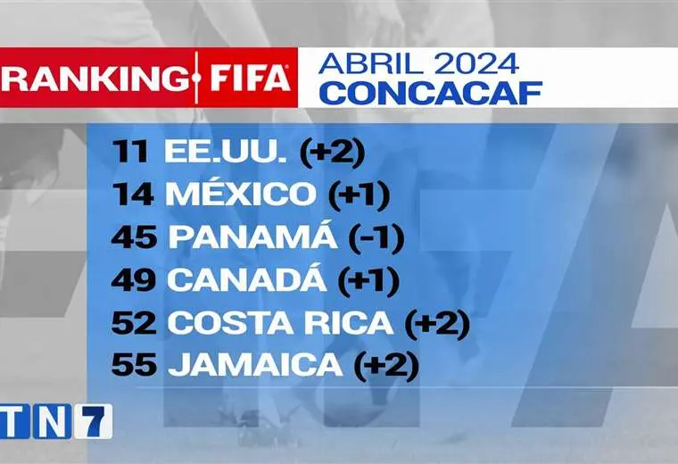 El primer lugar de la Concacaf es Estados Unidos en el puesto 11 y que subió dos puestos tras ganar la Liga de Naciones.