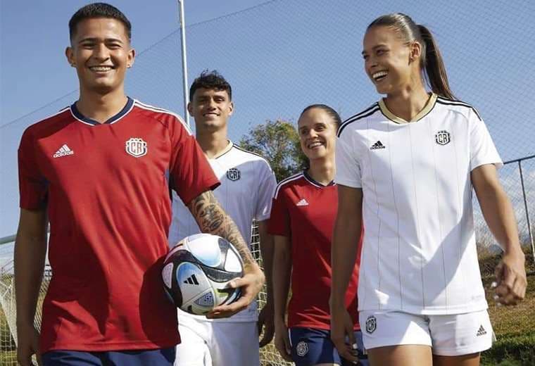 La camiseta de local es roja con pequeños ribetes azules y blancos en el cuello. Además, tiene el nuevo logo de la Federación Costarricense de Fútbol.