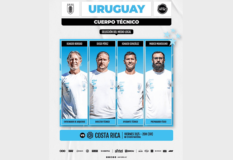 La Selección Uruguaya, en redes sociales, comunicó cuál será el cuerpo técnico para este encuentro.