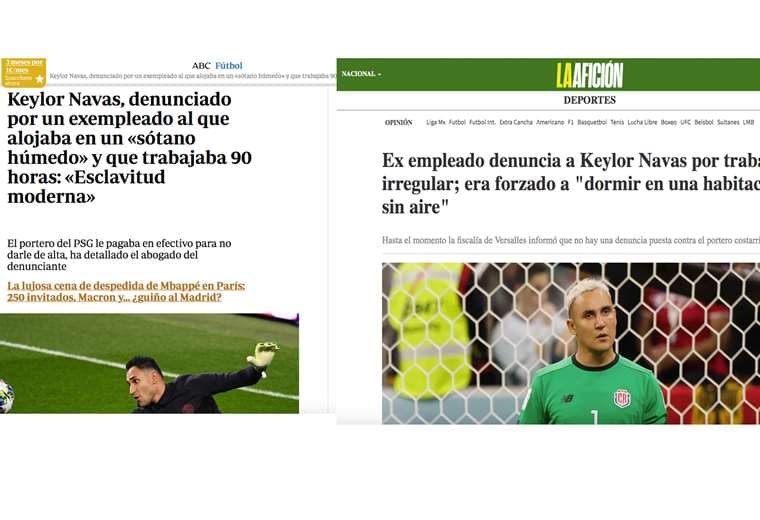 Infobae de Argentina, por ejemplo, destaca la noticia con el título: “La grave denuncia contra el arquero Keylor Navas de un ex empleado en Francia: disparos, trabajo sin contrato y vivienda en un sótano”.