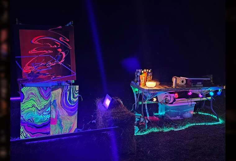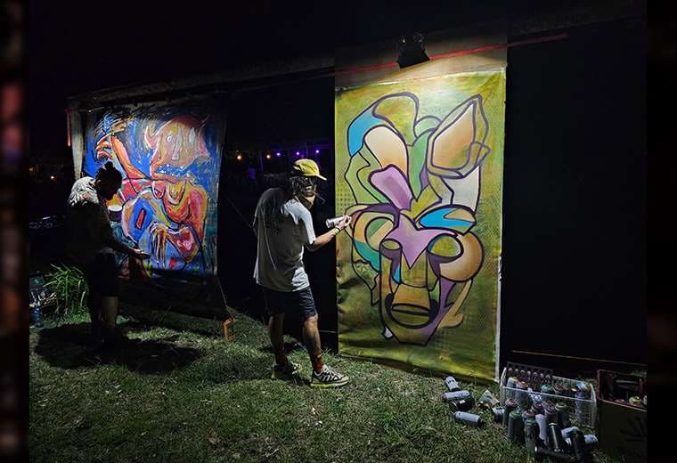 "La obra es un poquito de lo que se vivió hoy durante el día, yo empecé como a las 5 de la tarde, cuando empezaron los conciertos, y estuve trabajándola durante toda la noche. Y es básicamente como de ese ambiente, de todo lo que vi y viví, de toda la experiencia alrededor del festival", expresó Lucho, artista plástico que participó realizando obras en vivo durante el evento.