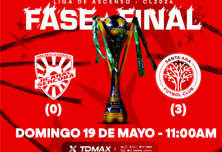 Este domingo a partir de las 11 a.m. se llevará a cabo el partido de vuelta de la final de la Liga Transcomer de Ascenso entre Jicaral Sercoba vs. Santa Ana, el cual podrá ver en vivo por la app TDMAX y que podría definir al nuevo equipo de la Primera División.