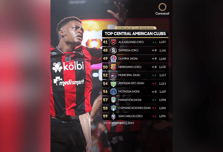 La Concacaf informó este viernes sobre el ranking de clubes y enumeró los 10 mejores clubes posicionados de Centroamérica, donde figuran cuatro clubes ticos.