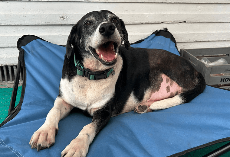 "Meses atrás este perrito fue atropellado en la Ruta 27, un accidente que le causó una grave lesión en una de sus patitas traseras. A pesar de los esfuerzos del doctor Daniel Chavarría por salvarla, lamentablemente tuvo que ser amputada. Sin embargo, esa etapa ya quedó atrás: hoy él está recuperado y puede llevar una vida completamente normal.