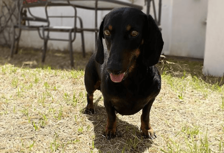 Descripción: este macho es de tamaño mediano y pesa alrededor 13 kilos. Es raza salchicha, por lo que es un poco inquieto. Además, está castrado, vacunado y desparasitado.