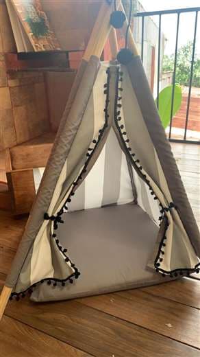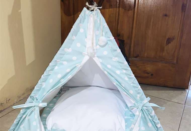 “Nosotros tenemos una tienda de accesorios de mascotas, tenemos nuestra línea, pero podemos confeccionarlo al gusto del cliente. También hacemos camas personalizadas, las camitas de madera con el nombre del perrito y las camitas Dipi, que son las que más le gustan a la gente (forma de tienda de campaña)”, comentó Salazar.