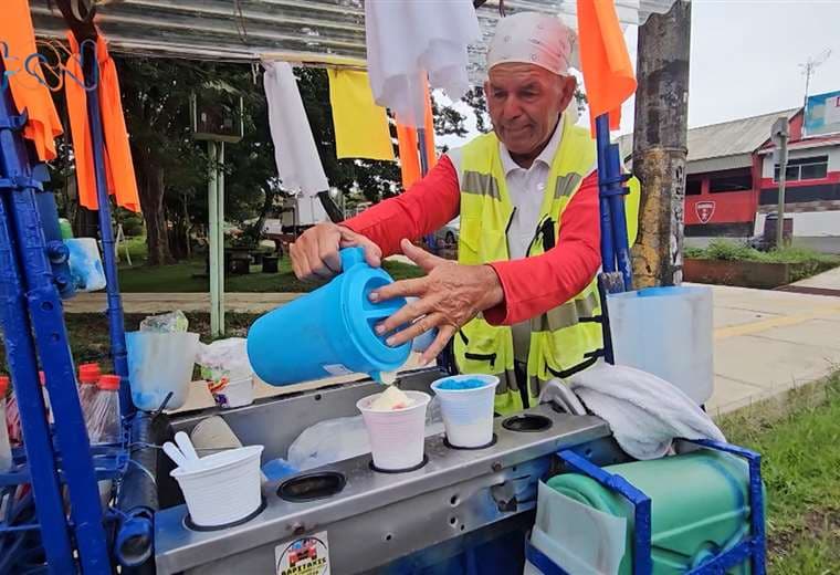 Jiménez vive en Santiago de Palmares, pero su lugar de trabajo es el parque central de Zaragoza, donde, día tras día, desde las 11 a. m. hasta las 4 p. m., se le puede encontrar con su carretilla de granizados, siempre listo para atender a quienes buscan un dulce alivio bajo el sol.