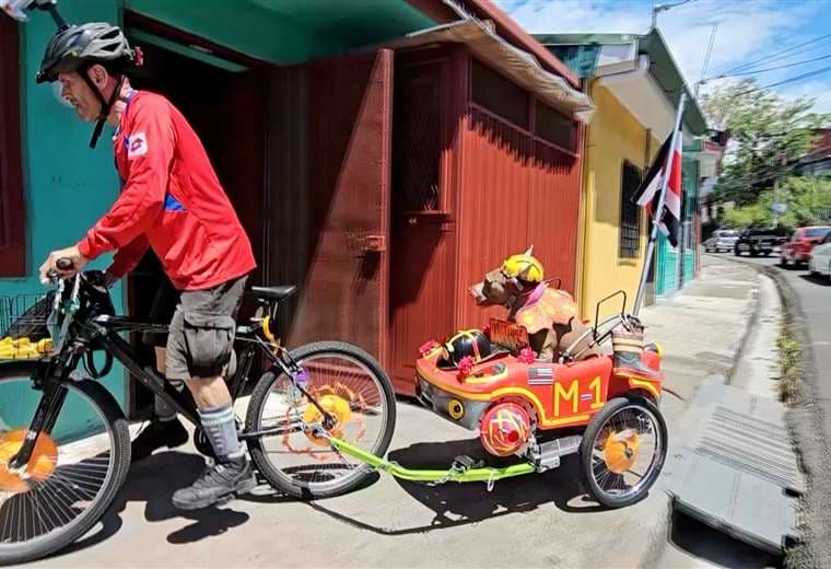 Todos los días, el hombre de 64 años y su American Stanford recorren las calles de la capital, pero lo que hace especial el paseo es que se viste de bombero (repase la información en el video adjunto).
